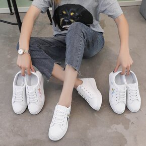 2022休闲平底刺绣树叶轻便小白鞋 休闲系带板鞋时...