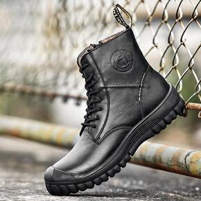 真皮秋季马丁靴男隐形内增高男鞋10cm英伦百搭工装...