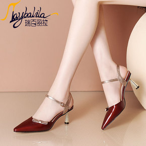 瑞百丽拉2021夏季新品细跟圆头露趾凉鞋女一字扣香...