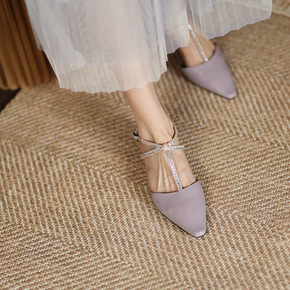 瑞百丽拉2021夏季新品粗跟尖头凉鞋女大码一字扣包...