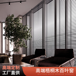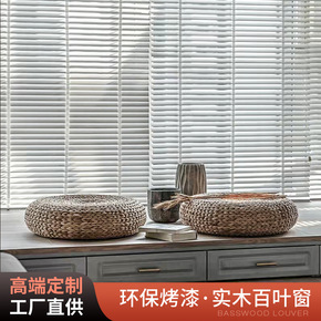 木百叶窗帘遮光遮阳电动升降办公室书房客厅透气窗木质...