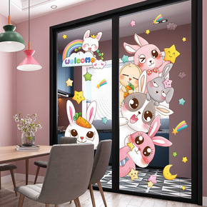 厨房推拉门防撞墙贴玻璃贴纸客厅阳台中国风贴画福字门...