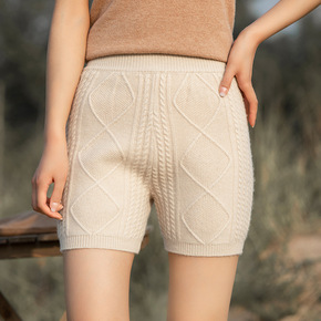 羊绒打底裤中腰女短裤秋冬新款纯色七针扭花休闲百搭羊...
