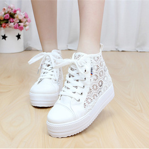 【HOT】夏季新款厚底松糕鞋 甜美镂空蕾丝运动休闲...