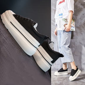 檀健次同款帆布鞋女2022春夏款百搭厚底系带单鞋日...