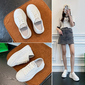 贝壳头溶解小白鞋女踩脚两穿单鞋松糕厚底增高休闲板鞋...