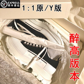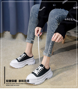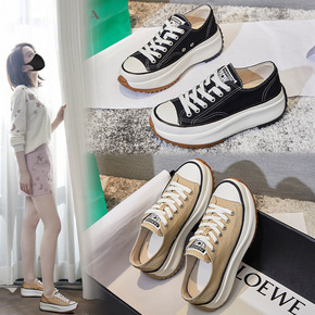 带源标麦昆2022新款娜扎同款帆布鞋增高系带厚底休...