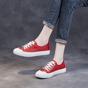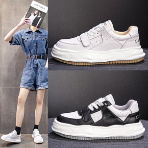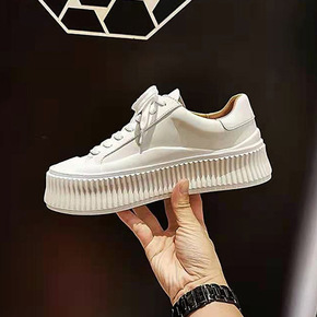 真皮厚底溶解鞋女2022年春季新款低帮小白鞋女平底...