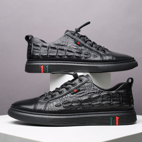 头层牛皮新款男式一脚蹬平底板鞋快手直播货源真皮鳄鱼...