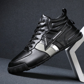 2021年秋季新款高帮男鞋真皮包底鞋休闲平底板鞋韩...