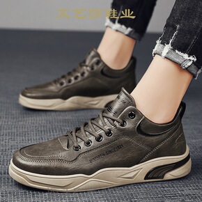 厂家直供新款板鞋男真皮休闲鞋子韩版男士马丁鞋英伦工...