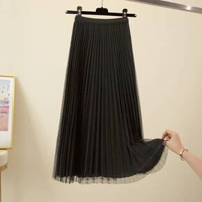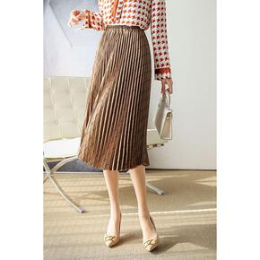 半身裙女2022新款秋冬纱裙高腰长裙中长款百褶裙亮...