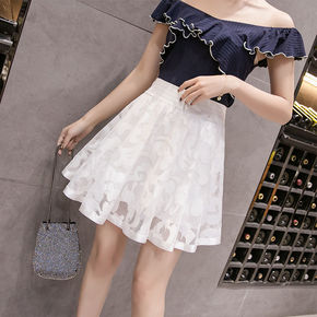 松紧腰蓬蓬裙女2022春夏新款蕾丝a字百褶裙ins...
