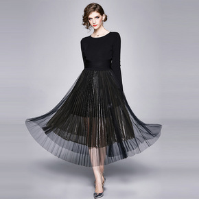 欧洲站2021秋季新款欧货洋气露肩长袖T恤百褶裙两...