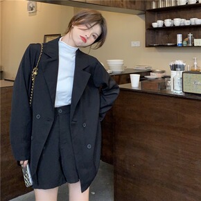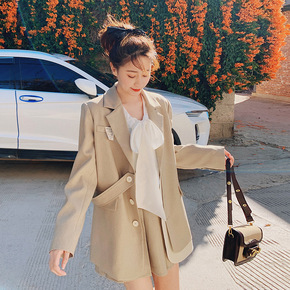 2021年早秋新款网红西装两件套女士中长款西服外套...