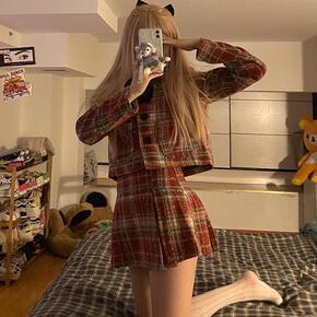 法式学院风套装女短款西装外套秋季百褶半身裙短裙时尚...