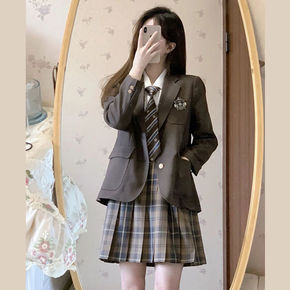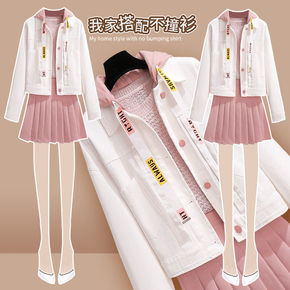 学院风套装女小个子秋装搭配显高西装外套衬衫百褶裙三...