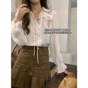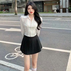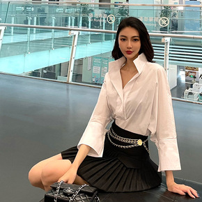 宛宛2021法式巴黎午后山茶花简约衬衫百褶裙套装...