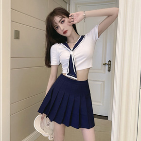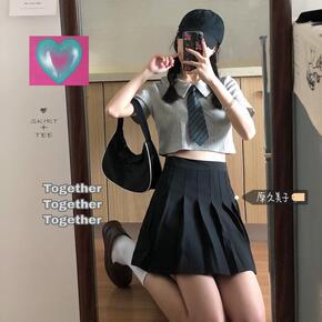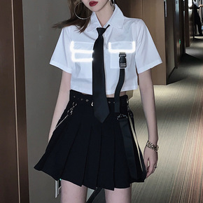 日杂封面少女~韩系纯欲BM风领带短T恤+俏皮百褶短...