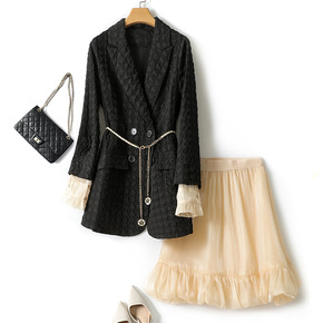 时尚套装2021早秋新款设计感小众女西装百褶裙 衬...