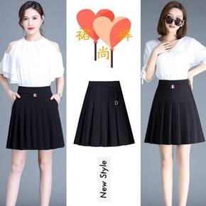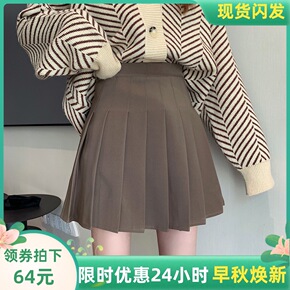 日系气质通勤女装2021秋冬新款百搭百褶裙针织褶皱...