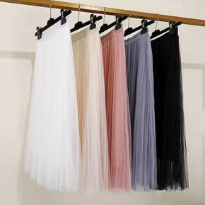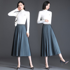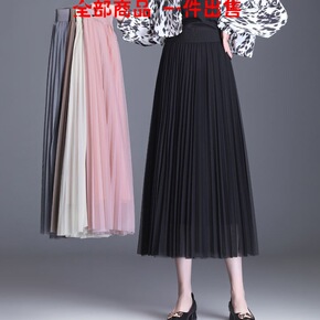 网纱新款百褶半身裙2021秋冬松紧仙女裙高腰长裙中...