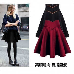 针织半身裙女秋冬季2021中长款高腰黑色显瘦半裙a...