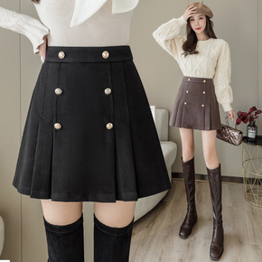 秋冬韩版纯色金丝绒百褶裙中长款鹿皮绒高腰半身裙女麂...