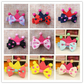布艺儿童皇冠发夹女孩可爱波点发卡 幼儿园小朋友发饰...