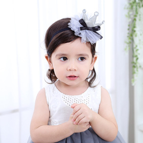 新款公主风儿童皇冠爱心亮片网纱发箍宝宝头箍头扣...