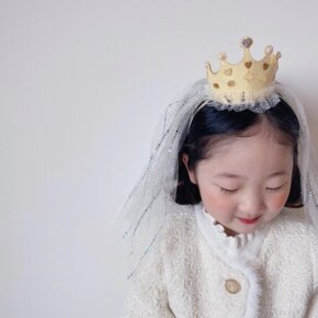 女童头纱韩版花童发饰白色公主婚纱头饰皇冠多层头纱一...