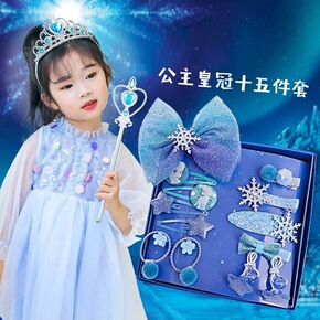 迪士尼正版授权冰雪奇缘2艾莎公主儿童发夹套装女童碎...