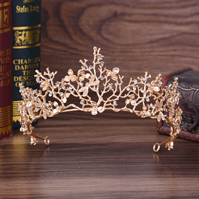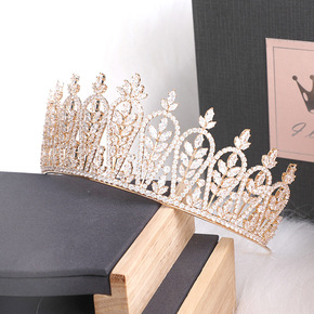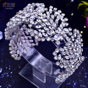 H1072欧美流行复古婚庆叶子造型水钻新娘皇冠 发...