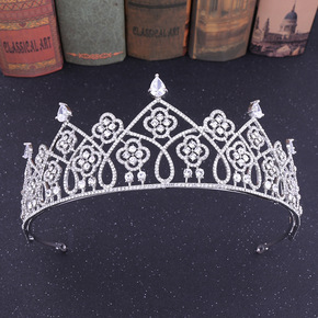 H1113韩式合金水钻锆石新娘小皇冠 精致镶锆石婚...