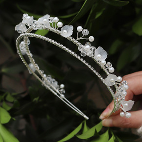 水钻鲜花大皇冠生日蛋糕装饰高亮珍珠新娘饰品头饰发饰...
