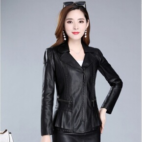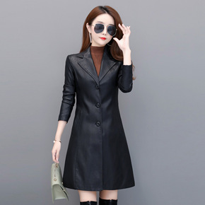 2019秋冬新款大码皮衣女韩版翻领中长款皮夹克女修...