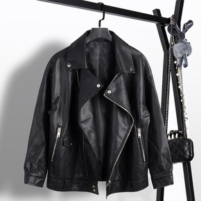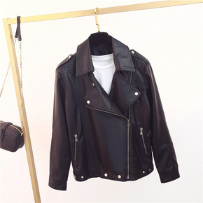 皮衣女外套宽松短款PU女士皮夹克机车皮衣帅气外套2...