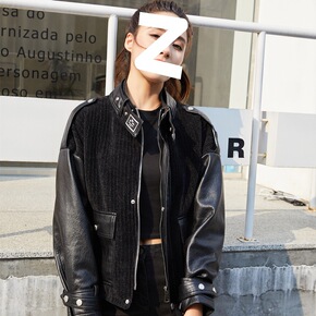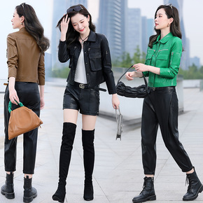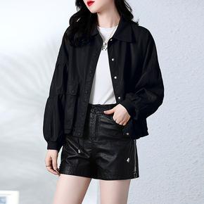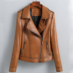 明星同款羊皮夹克女2022春季新款绵羊皮机车外套海...