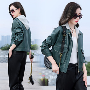 卡芙兰帝皮衣女皮外套短款皮夹克长袖帽韩版气质通勤立...