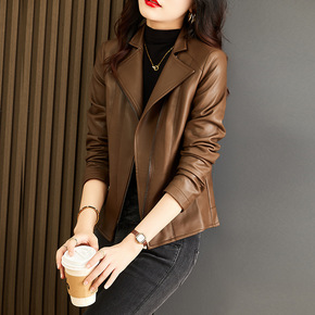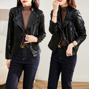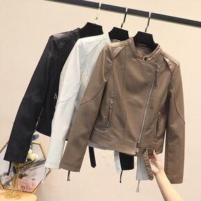 2022亚马逊秋冬新款女皮衣欧美修身皮百搭机车皮衣...