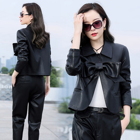 欧洲站2022春装新款女士机车夹克pu皮名媛风气质...