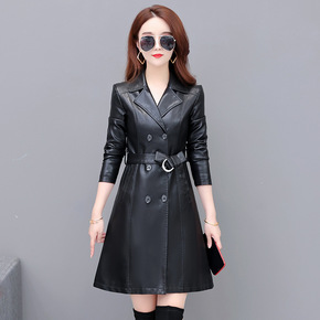 2021秋冬新韩版女士皮风衣女PU皮外套大码中长皮...