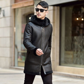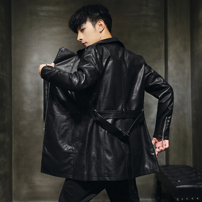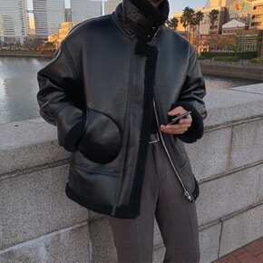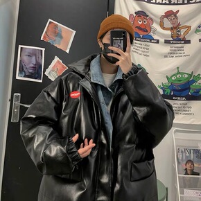速卖通港风外套男式潮牌翻领机车皮夹克冬季新款加绒P...