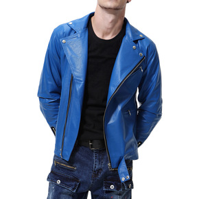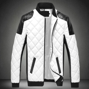 wish秋冬季新款拼色潮款皮衣时尚青年立领机车PU...