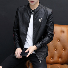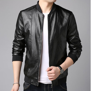 春秋季新款棒球领PU机车皮衣男短款修身韩版潮流帅气...