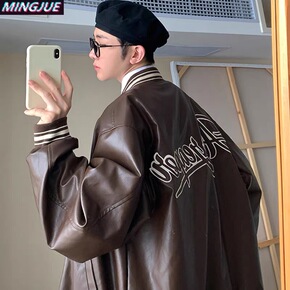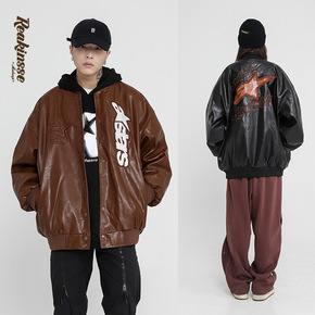 PU皮棒球服外套男春秋高街休闲运动夹克秋季韩版潮流...