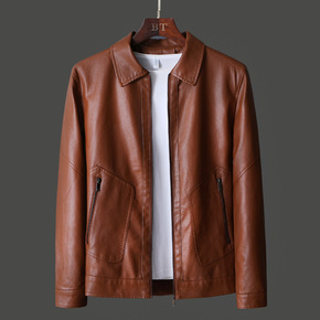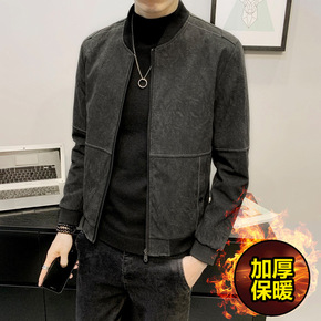 2021新款男士皮夹克衫韩版青年休闲加绒皮外套男装...