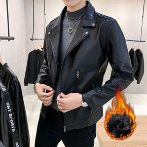 2021冬季新款男士韩版休闲皮衣加绒加厚修身潮牌帅...