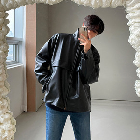 机车皮衣男痞帅韩版潮流港风ins排扣外套休闲宽松设...