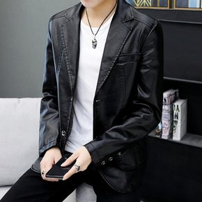 春秋新款男式皮衣西装时尚免烫韩版休闲西服男加肥皮衣...